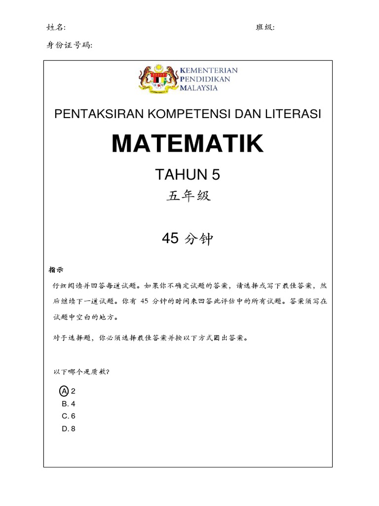 Pentaksiran Kompetensi Dan Literasi - Pilih bahasa (klik) yang hendak digunakan dalam pentaksiran.. Kompetensi individu sangat diperlukan agar dapat bertahan hidup dengan baik. Tahun 5 pkl matematik bm guru v2 0 pages 1 33 flip pdf download fliphtml5. Savesave pentaksiran kompetensi dan literasi bacaan for later. You've reached the end of your free preview. Xea4040 sekolah menengah kebangsaan sanzac masukkan nama singkatan kelas :